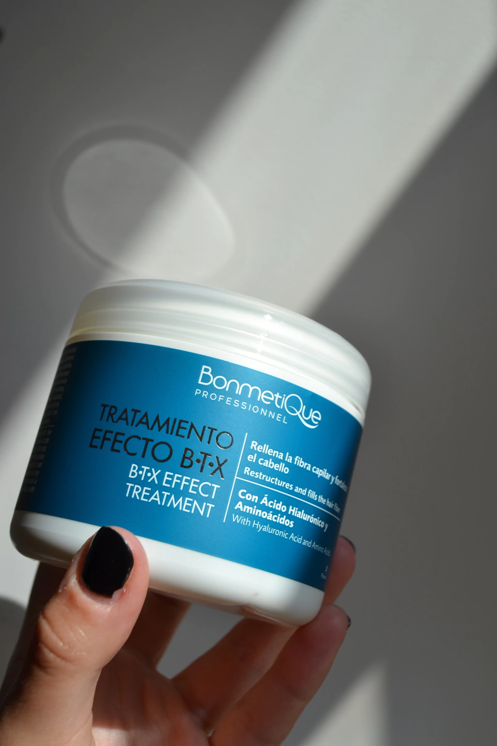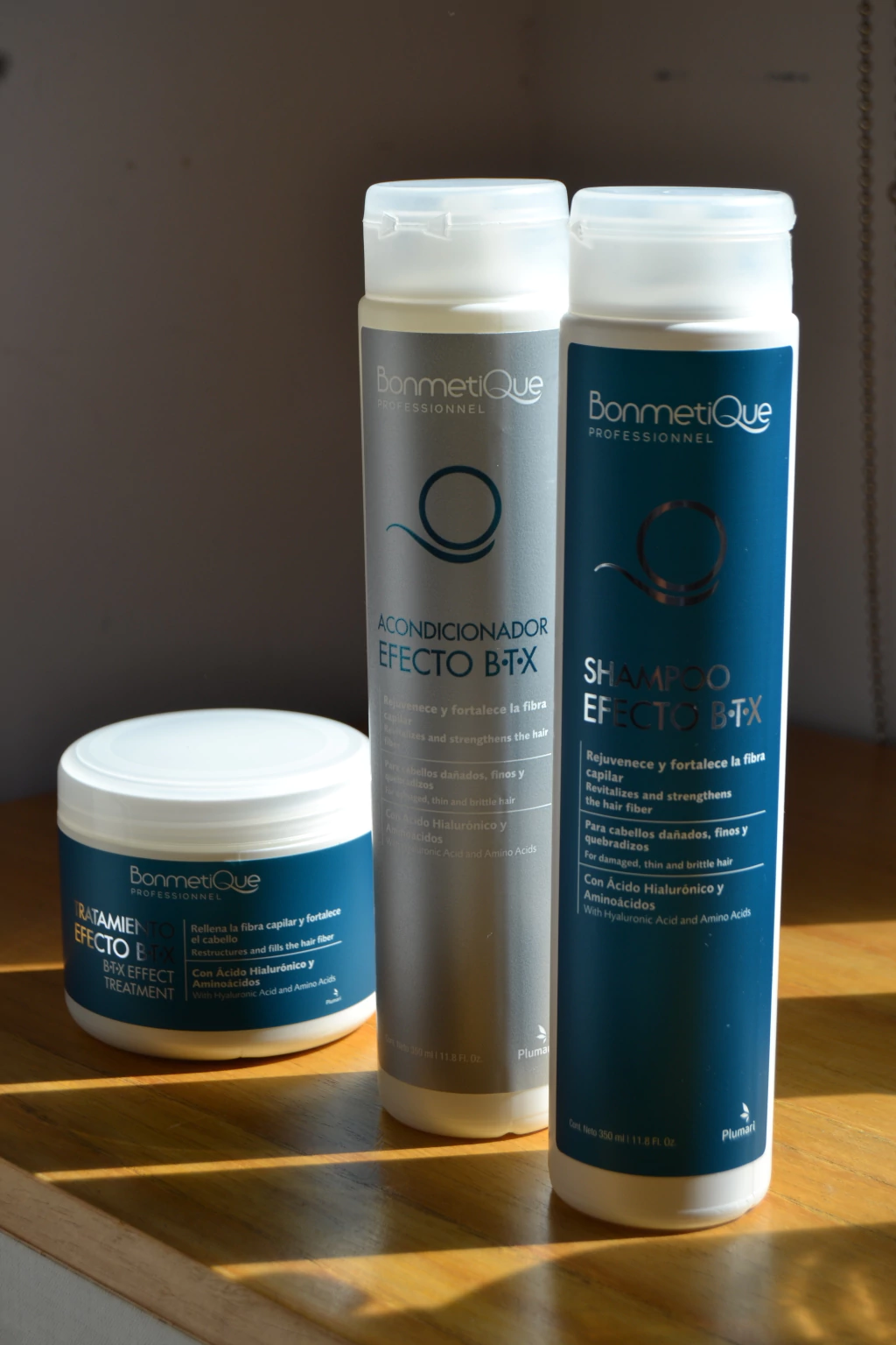 La línea Efecto B-TX de Bonmetique Professionnel está especialmente formulada para rejuvenecer, fortalecer y revitalizar la fibra capilar desde la primera aplicación. Su fórmula avanzada con Ácido Hialurónico, Colágeno y Aminoácidos Activos hidrata en profundidad, combate el frizz y devuelve al cabello su brillo y elasticidad natural.
